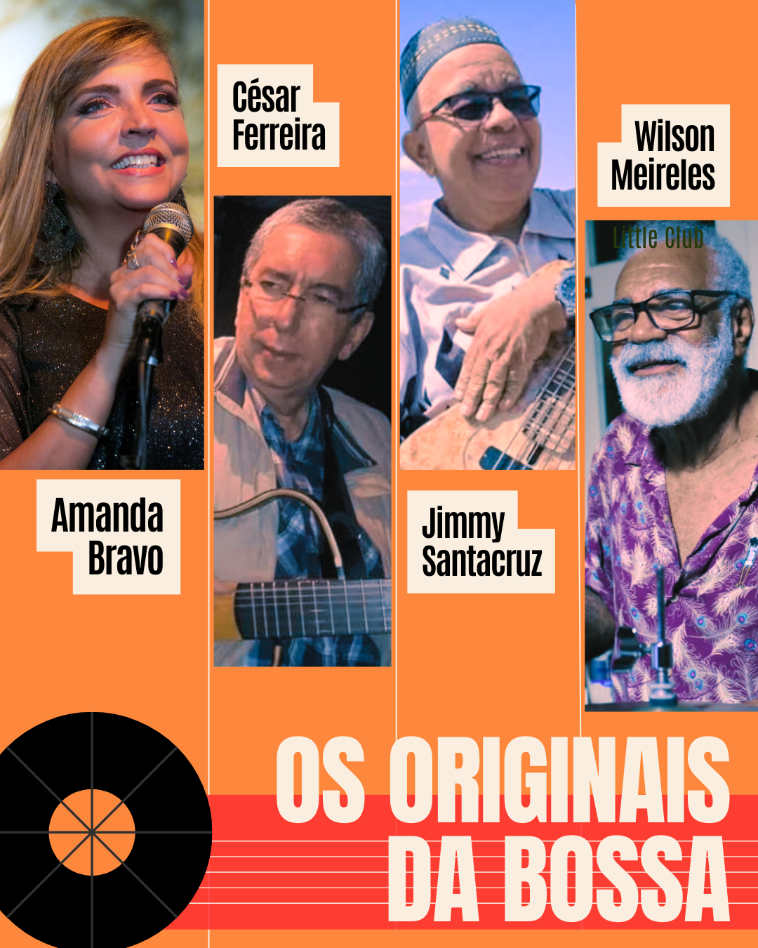 Um passeio vibrante pela história viva da Bossa Nova e do Sambalanço com o grupo formado pela cantora Amanda Bravo, o baixista Jimmy SantaCruz, o baterista Wilson Meirelles e o violonista César Ferreira.